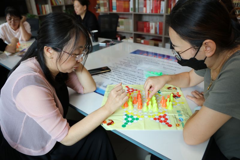 跳棋是一项益智类游戏,既有助于娱乐身心、放松心情,又可以锻炼人的逻辑思维和统筹全局的能力。此次演练赛,以两人对决的方式进行。活动过程中,选手们充分发挥聪明才智,在棋盘上展开较量,在和谐欢乐的气氛中,各组选手,屏住呼吸,仔细观察棋局布设,排兵布阵,认真走好每一步棋子,你攻我防,一点儿也不敢掉以轻心,大家或是在一旁观看,或是冥思苦想突破对手给自己带来的不利招数,或是聚精会神,冷静应对,真正展现了其乐融融的生动场景。