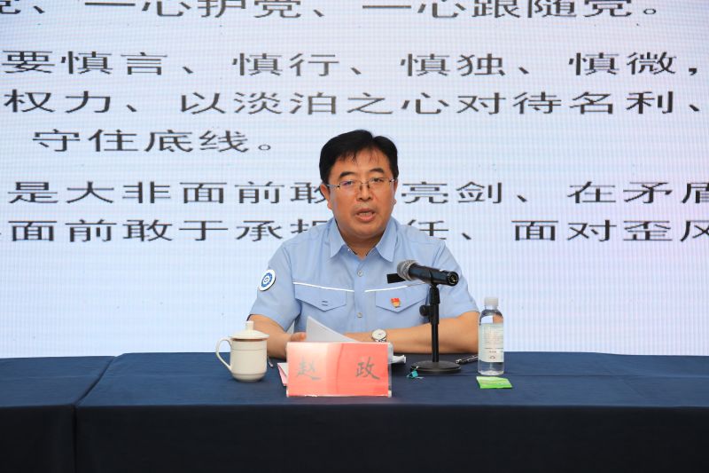 表彰结束后,赵政以《做忠诚干净担当的新时代地勘人》为主题,围绕充分认识“忠诚、干净、担当”的本质内涵、从《中国共产党纪律处分条例》中准确把握对“忠诚、干净、担当”的规定要求、发挥表率作用,把忠诚干净担当镌刻在地勘事业高质量发展大局之中三个方面讲授专题党课。他强调,一是要讲政治,锤炼过硬“忠诚”品格。始终将理论学习摆在首要位置;保持政治定力,提升政治能力;对标对表、忠实践行。二是要树正气,锻造过硬“干净”作风。加强纪律教育和纪律执行;增强抵腐定力,守住廉洁底线;转变工作作风,坚守为民初心。三是要重实践,磨砺过硬“担当”本领。增强工作主动性;提高工作效率;转变工作方式。坚定信心、继续前行,抢抓机遇、果断作为,不断擦亮忠诚干净担当的“本色”,在新时代新征程中展现新担当新作为,共同开创公司高质量发展新局面。