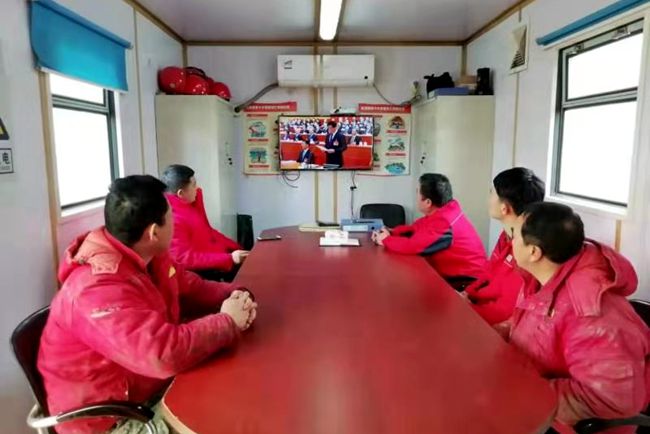 我队水井党支部组织一线党员集中收看十三届全国人大四次会议直播